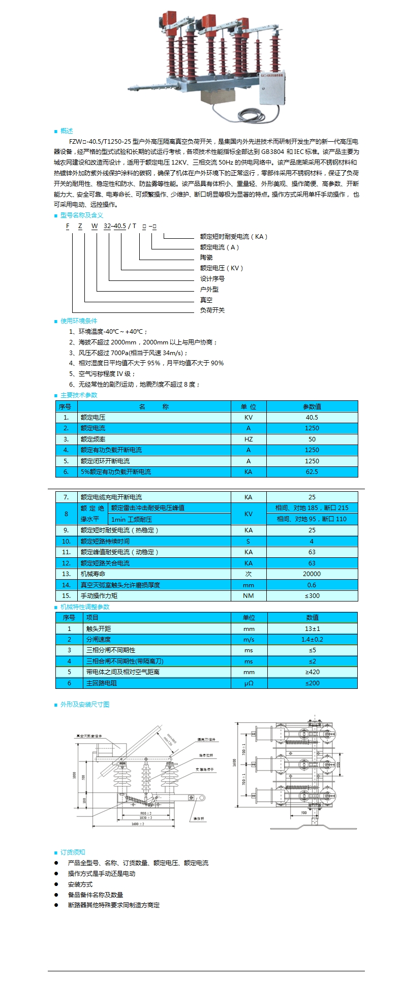| FZW32-40.5型戶外交流高壓真空負荷開關 | |
